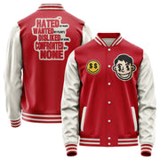 Custom Red Varsity Jacket Patches Beige Leather Sleeves - Hated Wanted Dosliked Confornted NONE